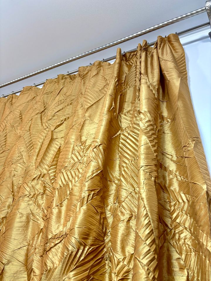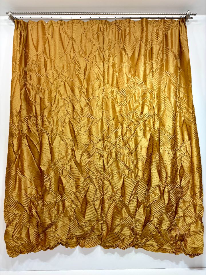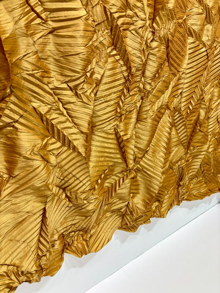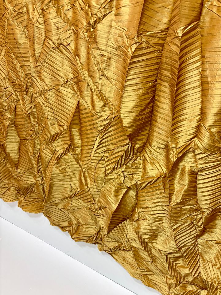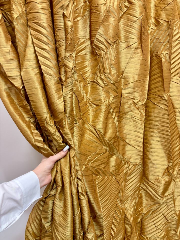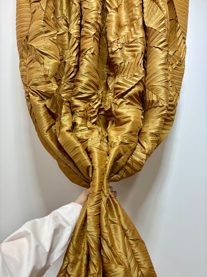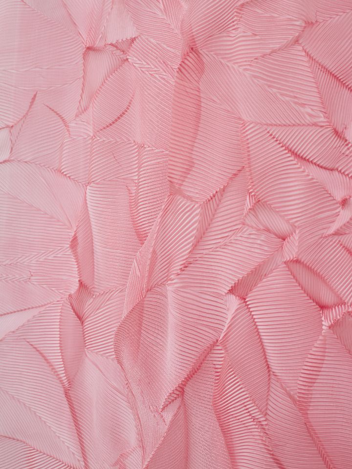 Уникальная складка на основе параллельного плиссе с эффектом ломаных линий. Создает хаотичный динамичный геометричный рисунок с преломлениями. Размер складки варьируется от 10 до 20 мм для достижения различной визуальной интенсивности. Рекомендована для легких и средних тканей, подчеркивающих структурность линий. Ширина рабочей зоны составляет 300 см.